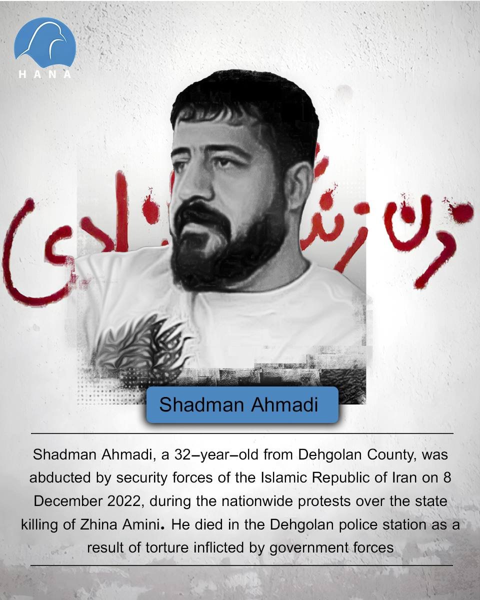 Shadman Ahmadi, a 32-year-old from Dehgolan County, was abducted by security forces of the Islamic Republic of Iran on 8 December 2022, during the nationwide protests over the state killing of Zhina Amini. He died in the Dehgolan police station as a result of torture inflicted by government forces.