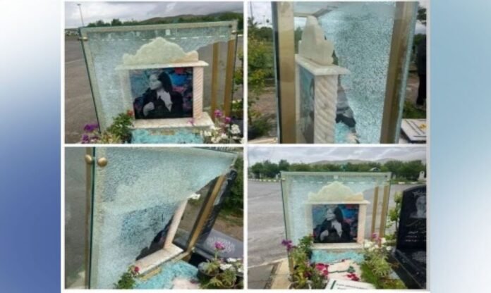 Hana; Ashkan Amini, the brother of #Zhina_Amini announced on his Instagram page that the glass of #Zhina (Mahsa) Amini’s tombstone was broken for the second time.