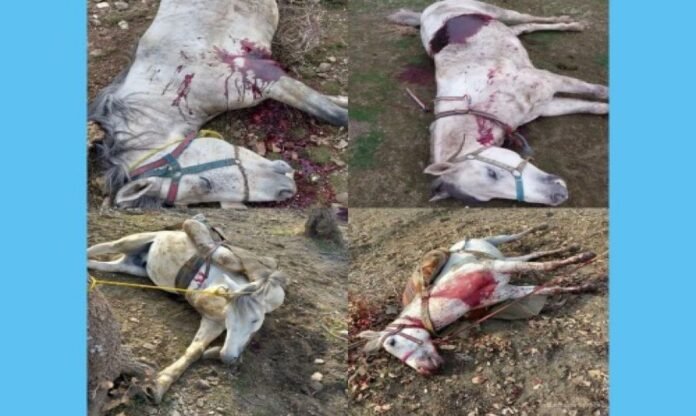 Hana: On Thursday, December 22, 2022, IRGC forces brutally killed at least 150 horses of traders in the highlands of Sardasht city after direct fire.