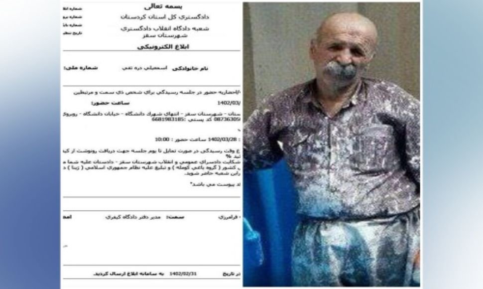 According to this notification, Osman Esmaili must appear in the Saqqez Revolution Court on Sunday, June 18, 2023, to defend the charges of "membership in the opposition groups of the country (Komala rebel group) and propaganda against the regime".