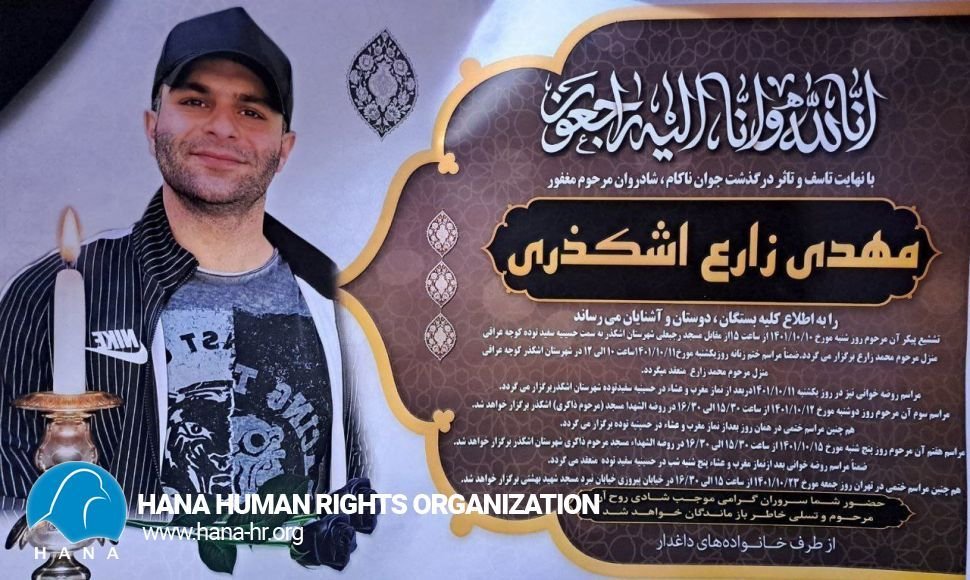 According to the reports received by Hana Human Rights Organization; A citizen with the identity of “Mehdi Zare-Ashkazari” from Ashkazar, Yazd and a resident of Tehran, was arrested during nationwide protests, and while his condition worsened due to severe torture, he fell into a coma a few hours after his temporary release, and after 20 days of hospitalization, he died on Friday, December 30, 2022.
