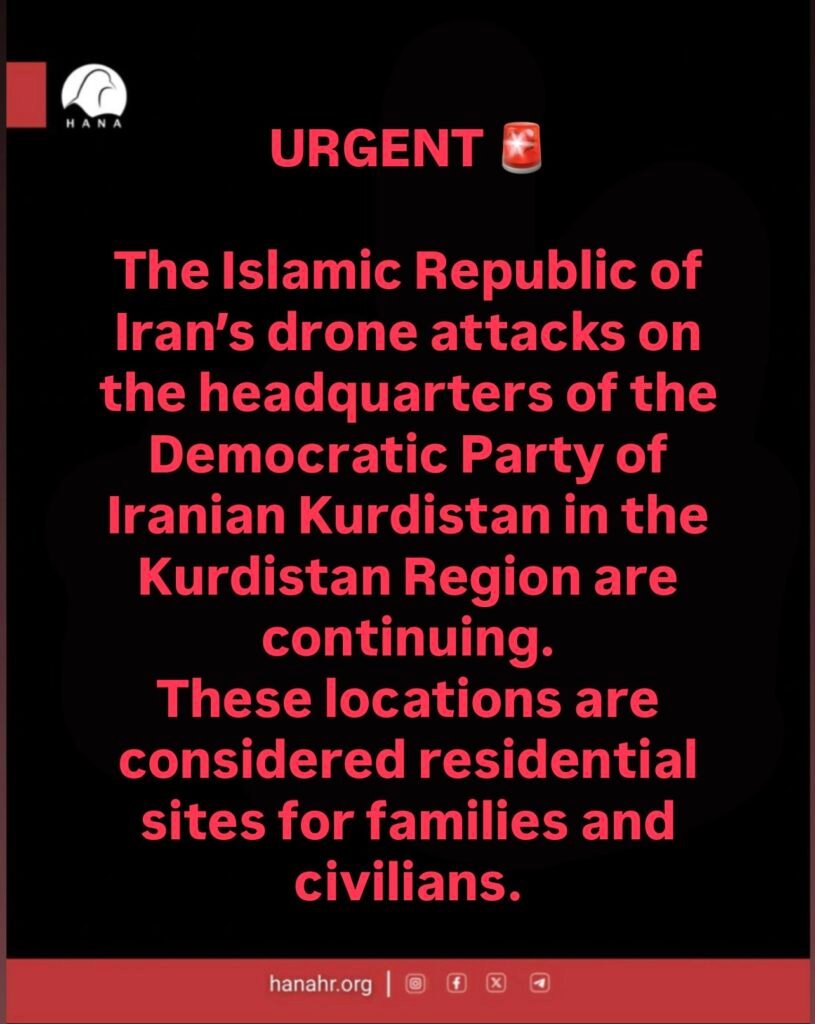 The Islamic Republic of Iran’s drone attacks on the headquarters of the Democratic Party of Iranian Kurdistan in the Kurdistan Region are continuing.
