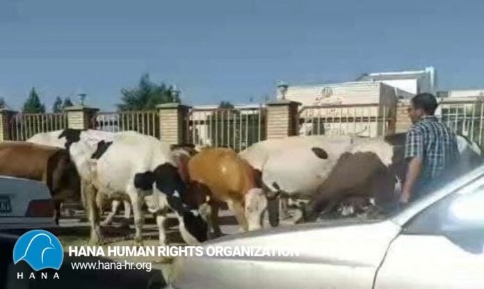 هانا: بنابە اخبار منتشر شدە در حرکتی اعتراضی دامداران شهرستان تکاب دام های خود را در روبروی فرمانداری این شهرستان جمع دادند.