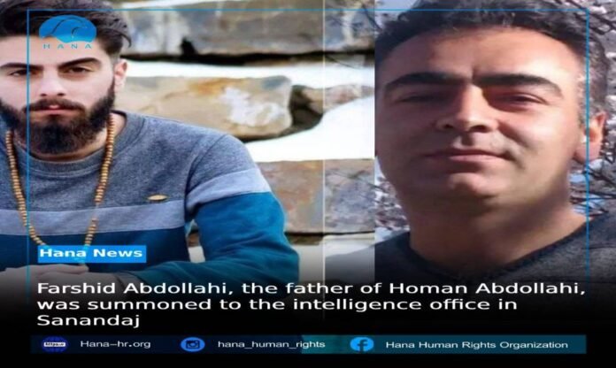 فرشید عبداللهی پدر جانباختە هومن عبداللهی، بە ادارە اطلاعات سنندج احضار شد