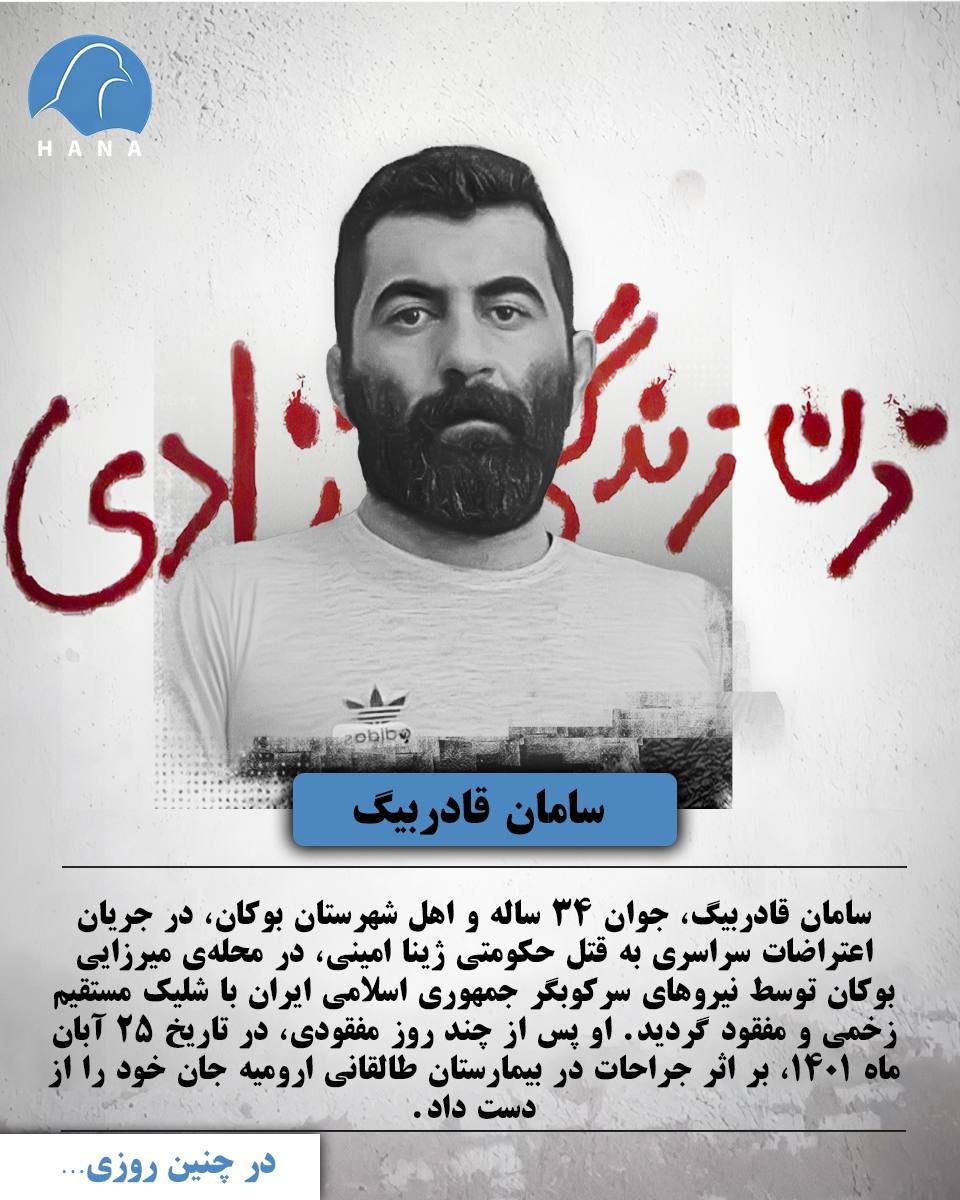 سامان قادربیگ، جوان ٣٤ ساله و اهل شهرستان بوکان، در جریان اعتراضات سراسری به قتل حکومتی ژینا امینی، در محلهی میرزایی بوکان توسط نیروهای سرکوبگر جمهوری اسلامی ایران با شلیک مستقیم زخمی و مفقود گردید. او پس از چند روز مفقودی، در تاریخ ٢٥ آبانماه ١٤٠١، بر اثر جراحات در بیمارستان طالقانی ارومیه جان خود را از دست داد.