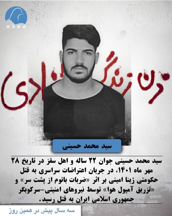 سید محمد حسینی جوان۲۲ ساله و اهل سقز در تاریخ ۲۸ مهر ماە ۱۴۰۱، در جریان اعتراضات سراسری بە قتل حکومتی ژینا امینی بر اثر «ضربات باتوم از پشت سر» و «تزریق آمپول هوا» توسط نیروهای امنیتی-سرکوبگر جمهوری اسلامی ایران بە قتل رسید.