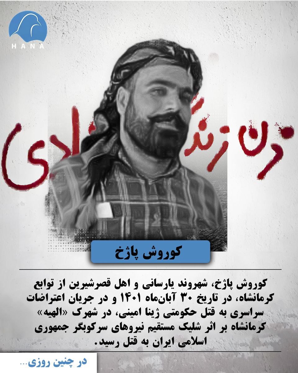کوروش پاژخ، شهروند یارسانی و اهل قصرشیرین از توابع کرمانشاه، در تاریخ ۳۰ آبان‌ماه ۱۴۰۱ و در جریان اعتراضات سراسری به قتل حکومتی ژینا امینی، در شهرک «الهیه» کرمانشاه بر اثر شلیک مستقیم نیروهای سرکوبگر جمهوری اسلامی ایران به قتل رسید.