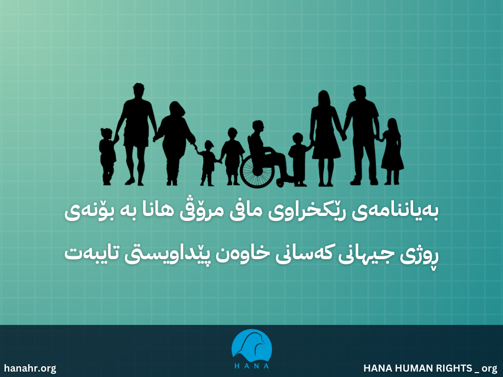 ڕێکخراوی مافی مرۆڤی هانا هاوکات لەگەڵ ڕۆژی جیهانی کەسانی خاوەن پێداویستییە تایبەتەکان جەخت لەسەر پێویستیی پابەندی حکومەتەکان بە پابەندبوونە یاسایی و ئەخلاقیەکانیان بەرامبەر بە ملیۆنان مرۆڤی خاوەن پێداویستی تایبەت دەکات.