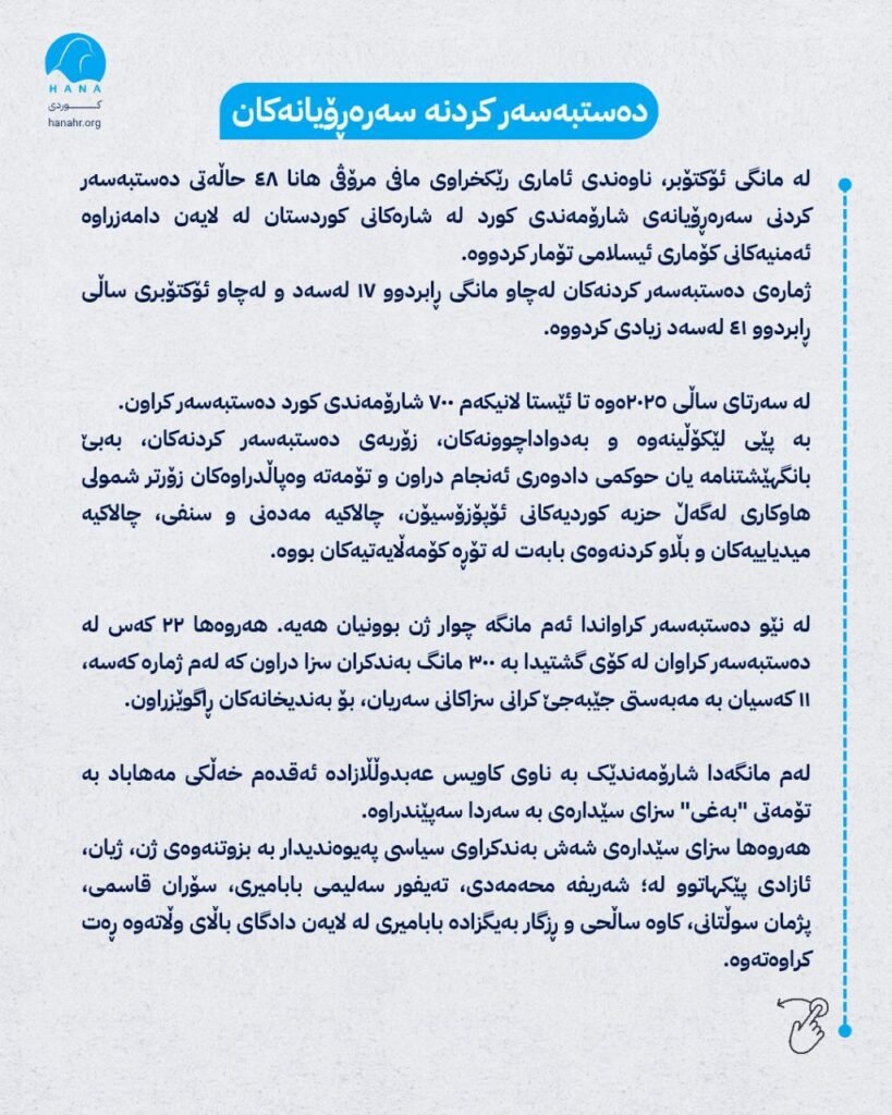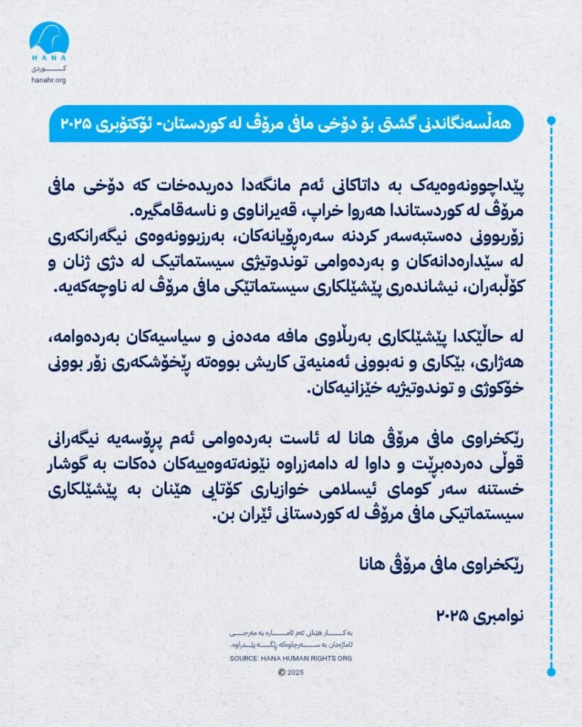 هەڵسەنگاندنی گشتی بۆ دۆخی مافی مرۆڤ لە کوردستان- ئۆکتۆبری ٢٠٢٥