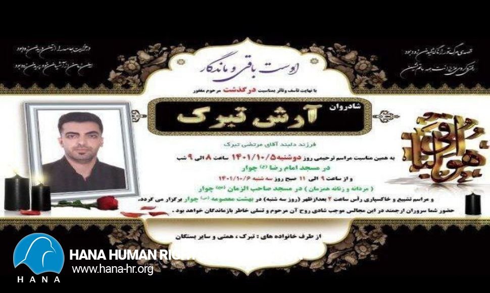 بە پێی ئەو ڕاپۆرتانەی بە ڕێکخراوی مافی مرۆڤی هانا گەشتوە؛ ڕۆژی یەکشەممە”٢٥ی دیسەمبری٢٠٢٢” هاووڵاتییەک بە ناوی “ئارەش تەبەرۆک” کوڕی مورتزا و خەڵکی شاری چوازی ئیلام، بە هۆی ئەو گوشارانەی بەهۆی دەرکردنی لە کارەکەیەوە دروست بووە، کۆتایی بە ژیانی خۆی هێناوە.