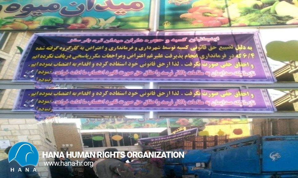 کاسبکارەکان لە مەیدانەکانی میوە و تەڕەبار، بە بەدەستەوەگرتنی بەنەر و پلاکارد کە دواکارییەکانی خۆیان لە سەر نووسیبوو دەستیان داوەتە ناڕەزایەتی.