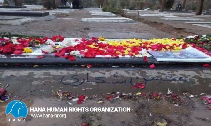دوابەدوای لەسێدارەدانی موحسین شکاری لە سەردەمی ڕاپەڕینی سەرتاسەری خەڵکی ئێران، لە لایەن بنەماڵە و هاوڕێکانیەوە بەردی گۆڕی بۆ ئامادە کرا، کە هێزە ئەمنییەکان و فەیلەقی بەردی گۆڕیان وەک هەڕەشەیەک بۆ سەر کۆماری ئیسلامی بینی و بەردی گۆڕی ئاماژەپێکراویان شکاند.