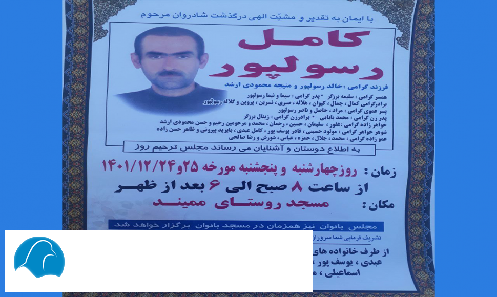 کامیل ڕەسووڵ پوور، کوڕی خالید، خێزاندار و باووکی دوو منداڵ ، خەڵکی ئاوایی میمەند،گیانیلەدەستدا و سەلیمە بەرزگەر، هاوسەری کامیل ڕەسووڵ پوور و سەلیم ئەحمەدی ئازەر, بە سەختی برینداربوون.