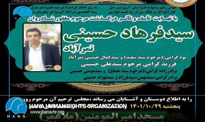 هانا: بەرەبەیانی ڕۆژی پێنجشەممە”۱۹ی ژانوییەی۲۰۲۳” سزای لە سێدارەدانی بەندکراوێکی کورد کە بە ناوی “سید فەرهاد حوسەینی”، کوڕی سەید عەلی و خەڵکی ئاوای “تەمرئاوا”ی سەلماس، لە زندانی ئەم شارە جێ بەجێکرا.