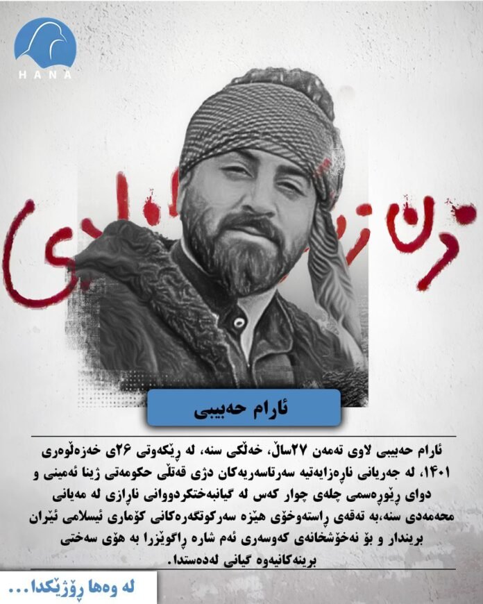 ئارام حەبیبی لاوی تەمەن ٢٧ساڵ، خەڵکی سنە، لە ڕێکەوتی ۲٦ی خەزەڵوەری ۱٤۰۱، لە جەریانی ناڕەزایەتیە سەرتاسەریەکان دژی قەتڵی حکومەتی ژینا ئەمینی و دوای ڕێوڕەسمی چلەی چوار کەس لە گیانبەختکردووانی ناڕازی لە مەیانی محەمەدی سنە،بە تەقەی ڕاستەوخۆی هێزە سەرکوتگەرەکانی کۆماری ئیسلامی ئێران بریندار و بۆ نەخۆشخانەی کەوسەری ئەم شارە ڕاگوێزرا بە هۆی سەختی برینەکانیەوە گیانی لەدەستدا.