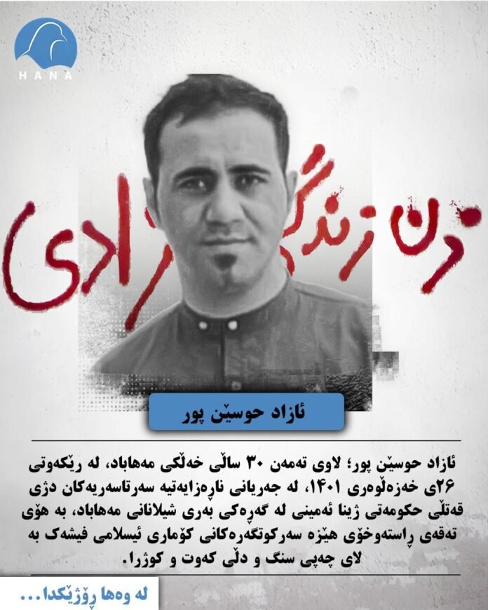ئازاد حوسێن پور لاوی تەمەن ٣٠ ساڵی خەڵکی مەهاباد، لە رێکەوتی ٢٦ی خەزەڵوەری ١٤٠١، لە جەریانی ناڕەزایەتیە سەرتاسەریەکان دژی قەتڵی حکومەتی ژینا ئەمینی لە گەڕەکی بەری شیلانانی مەهاباد، بە هۆی تەقەی ڕاستەوخۆی هێزە سەرکوتگەرەکانی کۆماری ئیسلامی فیشەک بە لای چەپی سنگ و دڵی کەوت و کوژرا.