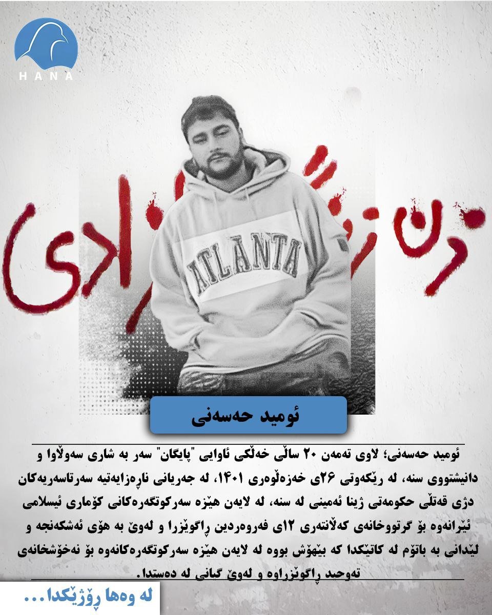 ئومید حەسەنی لاوی تەمەن ٢٠ ساڵی خەڵکی ئاوایی “پایگان”ی سەر بە شاری سەوڵاوا و دانیشتووی سنە، لە رێکەوتی ٢٦ی خەزەڵوەری ١٤٠١، لە جەریانی ناڕەزایەتیە سەرتاسەریەکان دژی قەتڵی حکومەتی ژینا ئەمینی لە سنە، لە لایەن هێزە سەرکوتگەرەکانی کۆماری ئیسلامی ئێرانەوە بۆ گرتووخانەی کەڵانتەری ١٢ی فەروەردین ڕاگوێزرا و لەوێ بە هۆی ئەشکەنجە و لێدانی بە باتۆم لە کاتێکدا کە بێهۆش بووە لە لایەن هێزە سەرکوتگەرەکانەوە بۆ نەخۆشخانەی تەوحید ڕاگوێزراوە و لەوێ گیانی لە دەستدا.