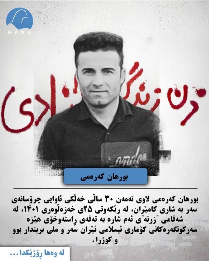 بورهان کەرەمی لاوی تەمەن ٣٠ ساڵی خەڵکی ئاوایی چرۆسانەی سەر بە شاری کامێران، لە رێکەوتی ٢٥ی خەزەڵوەری ١٤٠١، لە شەقامی “زرنە”ی ئەم شارە بە تەقەی ڕاستەوخۆی هێزە سەرکوتگەرەکانی کۆماری ئیسلامی ئێران سەر و ملی بریندار بوو و کوژرا.