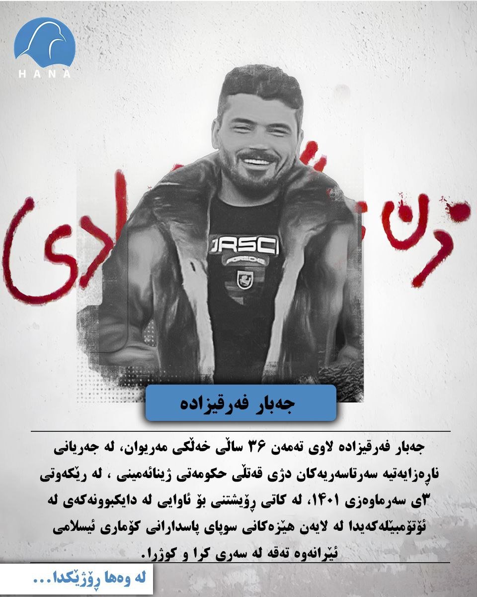 جەبار فەرقیزادە لاوی تەمەن ٣٦ ساڵی خەڵکی مەریوان، لە جەریانی ناڕەزایەتیە سەرتاسەریەکان دژی قەتڵی حکومەتی ژینائەمینی، لە رێکەوتی ٣ی سەرماوەزی ١٤٠١، لە کاتی ڕۆیشتنی بۆ ئاوایی لە دایکبوونەکەی لە ئۆتۆمبێلەکەیدا لە لایەن هێزەکانی سوپای پاسدارانەوە تەقە لە سەری کرا و کوژرا.