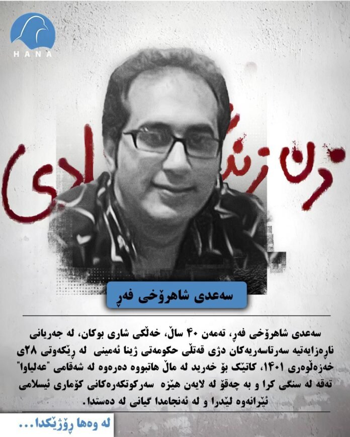 سەعدی شاهرۆخی فەر، تەمەن ٤٠ ساڵ، خەڵکی شاری بوکان، لە جەریانی ناڕەزایەتیە سەرتاسەریەکان دژی قەتڵی حکومەتی ژینا ئەمینی  لە ڕێکەوتی ۲٨ی خەزەڵوەری ۱٤۰۱ کاتێک بۆ خەرید لە ماڵ هاتبووە دەرەوە لە شەقامی “عەلیاوا” تەقە لە سنگی کرا و بە چەقۆ لە لایەن هێزە  سەرکوتکەرەکانی کۆماری ئیسلامی ئێرانەوە لێدرا و لە ئەنجامدا گیانی لە دەستدا.