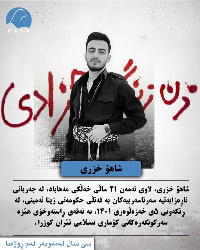 شاهۆ خزری، لاوی تەمەن ۲۱ ساڵی خەڵکی مەهاباد، لە جەریانی ناڕەزایەتیە سەرتاسەرییەکان بە قەتڵی حکومەتی ژینا ئەمینی، لە ڕێکەوتی ٥ی خەزەڵوەری ۱٤۰۱، بە تەقەی ڕاستەوخۆی هێزە سەرکوتگەرەکانی کۆماری ئیسلامی ئێران کوژرا.