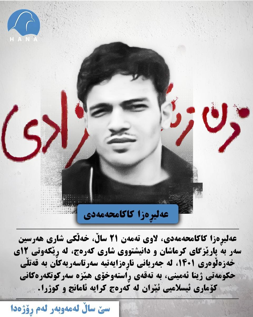 عەلیرەزا کاکا محەمەدی، لاوی تەمەن ٢١ ساڵ، خەڵکی شاری هەرسینی سەر بە پارێزگای کرماشان و دانیشتووی شاری کەرەج، لە ڕێکەوتی ١٢ی خەزەڵوەری ١٤٠١، لە جەریانی ناڕەزایەتیە سەرتاسەریەکان بە قەتڵی حکومەتی ژینا ئەمینی، بە تەقەی ڕاستەوخۆی هێزە سەرکوتگەرەکانی کۆماری ئیسلامیی ئێران لە کەرەج کرایە ئامانج و کوژرا.