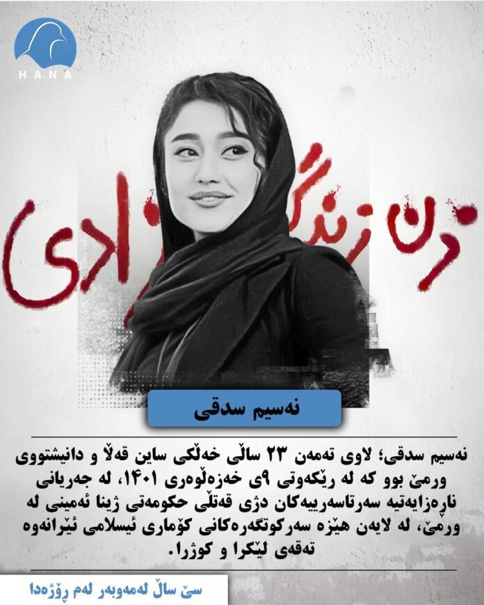 نەسیم سدقی لاوی تەمەن ٢٣ ساڵی خەڵکی ساین قەڵا و دانیشووتی ورمێ بوو کە لە رێکەوتی ٩ی خەزەڵوەری ١٤٠١، لە جەریانی ناڕەزایەتیە سەرتاسەریەکان دژی قەتڵی حکومەتی ژینا ئەمینی لە ورمێ، لە لایەن هێزە سەرکوتگەرەکانی کۆماری ئیسلامی ئێرانەوە تەقەی لێکرا و کوژرا.