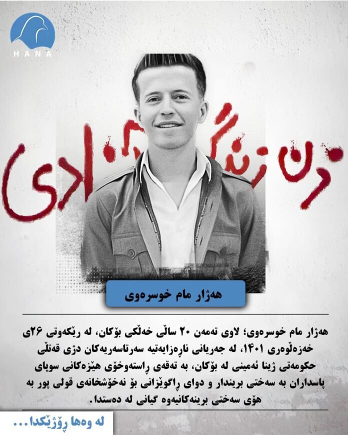 هەژار مام خوسرەوی لاوی تەمەن ٢٠ ساڵی خەڵکی بۆکان، لە رێکەوتی ٢٦ی خەزەڵوەری ١٤٠١، لە جەریانی ناڕەزایەتیە سەرتاسەریەکان دژی قەتڵی حکومەتی ژینا ئەمینی لە بۆکان، بە تەقەی ڕاستەوخۆی هێزەکانی سوپای پاسداران بە سەختی بریندار و دوای ڕاگوێزانی بۆ نەخۆشخانەی قولی پور بە هۆی سەختی برینەکانیەوە گیانی لە دەستدا.