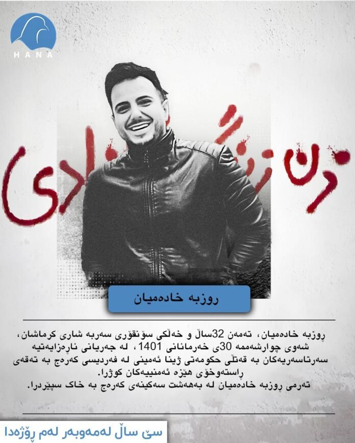 ڕوزبە خادەمیان، تەمەن ۳۲ساڵ و خەڵکی سۆنقۆری سەربە شاری کرماشان، شەوی چوارشەممە ۳۰ی خەرمانانی ۱٤۰۱، لە جەریانی ناڕەزایەتیە سەرتاسەریەکان بە قەتڵی حکومەتی ژینا ئەمینی لە فەردیسی کەرەج بە تەقەی ڕاستەوخۆی هێزە ئەمنییەکان کوژرا.